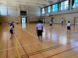 スポーツクラブは、体育館でボールを使ってゲームをしました。