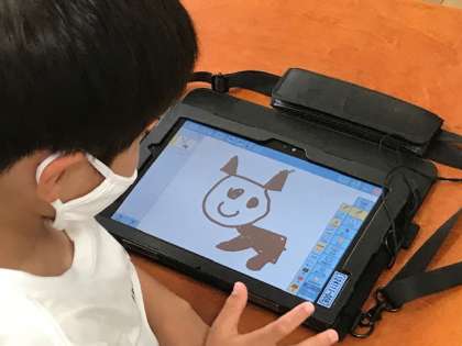 30日、1・2年生がタブレットを使ってお絵かきをしました。