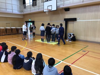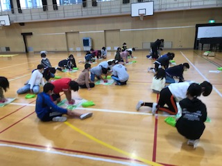 3時間目は、5・6年生が心臓マッサージと簡易担架についての訓練を行いました。わずかな時間でも心臓マッサージを続けることは随分体力のいることだと感じるものだったようですが、一生懸命に取り組んでいました。