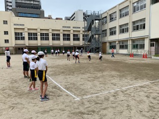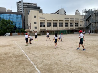 10月22日(木)の5、6年生の体育でタッチフットボールをしました。5年生はルールの確認をして、3対2や4対3の練習をしました。6年生は今まで練習してきたことを生かしてゲームに取り組みました。どちらの学年も積極的にプレーできていて、楽しそうに取り組んでいました。