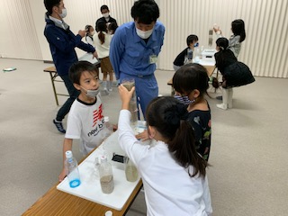 10月21日(木)に水道教室がありました。柴島浄水場の方から、浄水場のろ過のしくみや、水道水をどうやって家庭に届けているかをお話ししていただきました。砂を使ったろ過のしくみについては、ペットボトルを使って実験をしました。濁った水でも、砂を使ってろ過をすることで綺麗な透明の水になることに、子どもたちは驚きの声をあげていました。水を飲み比べたり、実験をしたりすることで、子どもたちは実体験を通して浄水場や水道について理解できました。