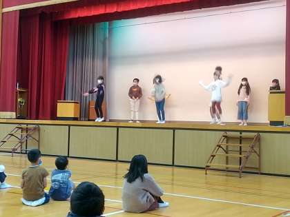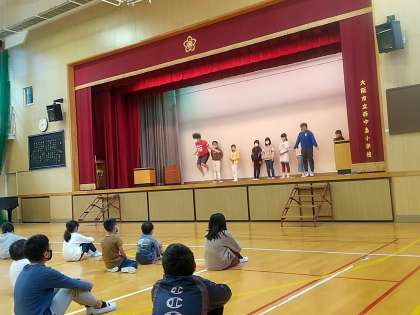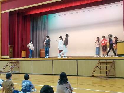 今日の児童集会は、健康運動委員会からなわとびの紹介がありました。