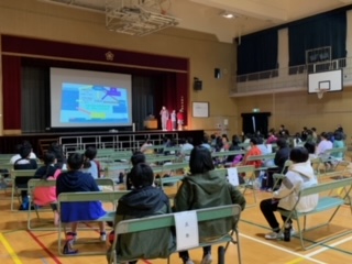 4年生は社会科で学習した、防災の学習をもとに自分たちで西中島防災マニュアルをまとめ、プレゼンテーションを使って発表しました。