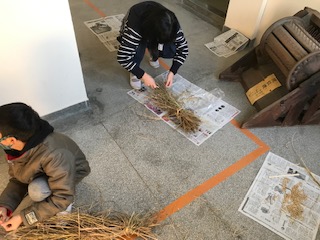 学校には、地域で昔に使われていた足踏み脱穀機と唐箕(とうみ)があります。脱穀機は少し試しで動かしましたが、わずかな穂を残らず収穫するために、割り箸を使って1つ1つ脱穀しました。