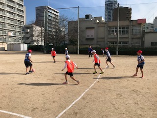1月8日からスタートとし、今日で4回目となります。基本的なボール操作やパスを受ける動き、味方同士で声を出し合って互いの動きを連携させていく大切さなどを細かく指導していただき、回を重ねるごとにゲームで生かせる場面が増えてくるようになりました。