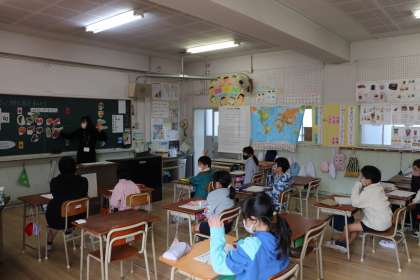 旬の食べ物がいつかを、その食材ごとに考えていく活動では、普段の自分の生活経験からどの季節かを考えていきました。かぼちゃは夏に取れますが、秋冬まで保存できることも知ることができ、子どもたちはびっくりしていました。