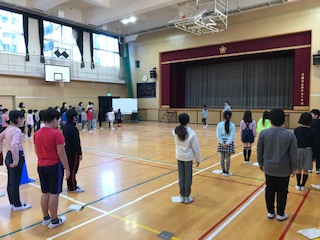 22日(月)児童集会で、3月4日に行う卒業をお祝いする会のよびかけ練習などを行いました。