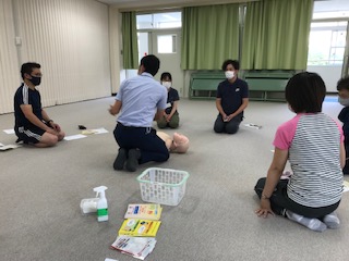 15日(火)、教職員で救命講習会を実施しました。毎年、この時期に淀川消防署から練習用の人形とAEDを借りて実地訓練を行っています。