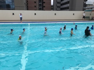 2日、待ちに待ったプール開きです。大きなプールに入るのは、少しドキドキした気持ちでもあり、また楽しみでもあったようです。