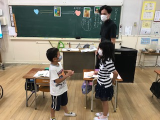「お月さまとコロ」という教材で、コロが友達のギロに対して悪いことをしてしまったことについて、謝りたいか、謝らないか。また、それはどんな理由があるかを考え、互いの考えを交流し合いました。