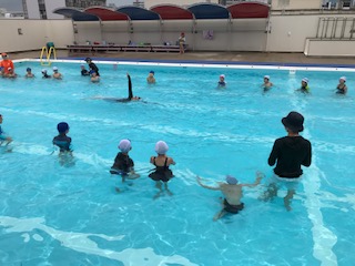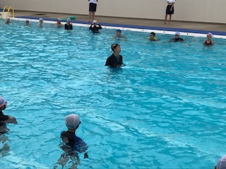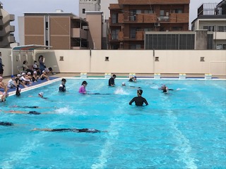 2時間目は4・5・6年生が、け伸びを中心に、きれいにまっすぐと浮けるように一人一人に丁寧に指導いただきました。そのことを生かしてバタ足やクロールも泳ぎました。