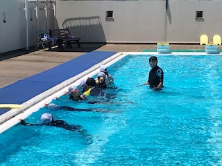 21日、プール補講2日目となりました。きれいに浮くけのびや水中で鼻からぶくぶくと息を出すことなどの基本もできています。そのため、それぞれの課題に応じて練習を行うように工夫しています。