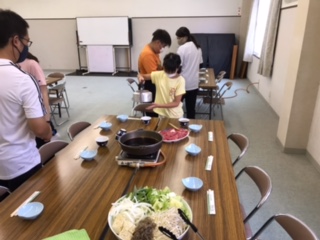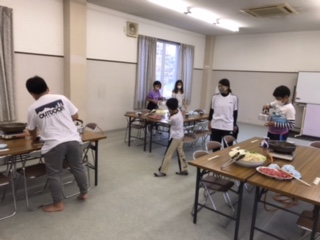 6時からの夕食に合わせて、食事係が準備を進めています。