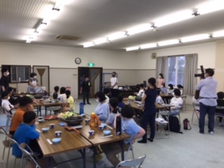 感染対策のため話をせずに、すき焼きを作るのも取り分けるのも教員が行います。