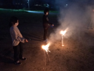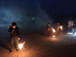 まじは、手持ち花火から始めます。みんな、とても楽しみにしていたようで、夏を味わっています。