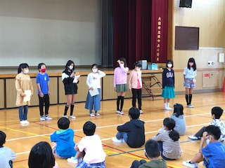 また、児童会からは「えがおで、なかよく、たすけあい」という目標が掲げられ、みんなでそんな学校にしようという説明がありました。