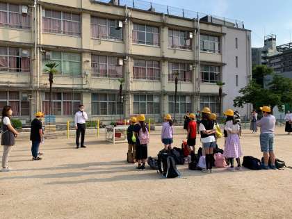 5月25日(水)は6年生が楽しみにしていた志摩・鳥羽方面への修学旅行出発の日です。朝から爽やかな天気のもとで出発式を行いました。校長先生からは集団行動のルールを守って楽しい修学旅行になるように過ごしましょう、とお話しがありました。6年生の児童代表からも、この2日間を楽しく過ごせるように協力しましょう、とお話しをしてくれました。それでは気をつけて、行ってらっしゃい!