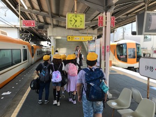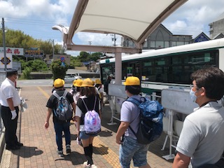 鵜方駅に到着し、これからバスで志摩スペイン村に向かいます。
