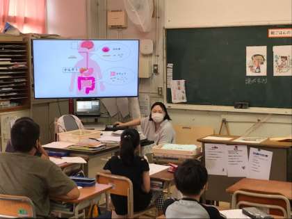 5日、区内栄養教諭に来校いただき、5年生が「朝ごはんの大切さについて知ろう」という課題で学習しました。