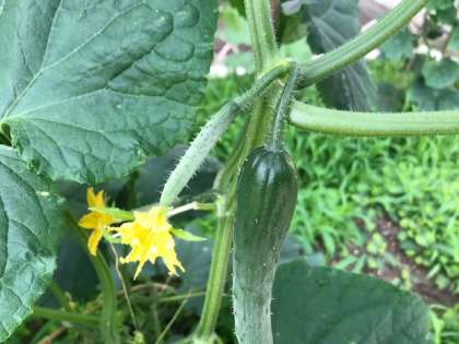 また、観察すると、大きなきゅうりの横には小さなきゅうりを見つけることができました。花が咲いた後に、実が膨らんでいくということも想像できたようです。