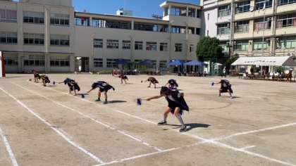 3・4年生は北海道のソーランの踊りを手足をしっかり伸ばしたり、力強い声を出したりして力強く舞うことができました。玉入れやリレーでも友だちと協力して取り組むことができていました。