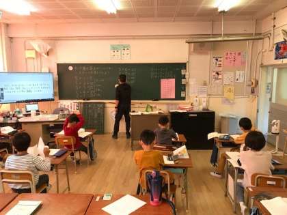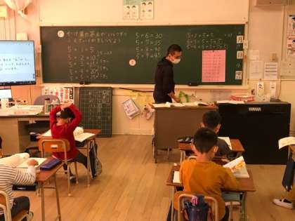 19日、2年算数の学習のようすです。5×1、5×2、5×3…の計算から、5の段のかけ算がどのように変化していくかを考えました。