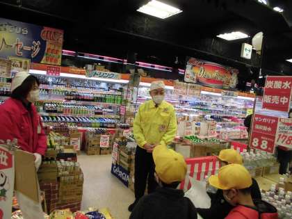 ものを売る工夫や、1日のお客さんの数の話などを聞くことができました。売り場の見学では、食べ物や飲み物以外にも、マスクや洗剤、台所用品など、色々なものが売っていることに気づくことができました。