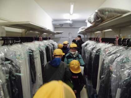 次に、ライフクリーナーさんへ行きました。使っている洗濯機の話や、きれいに洗うための工夫の話を聞くことができました。また、ライフクリーナーさんの好意で、レジの裏側の、服が並んでいる場所や、服を修繕する場所も見せていただきました。ミシンやアイロンなども見ることができました。