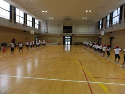 9月8日(水)4時間目、1・2年生が体育館で練習しました。雨が続いて、運動場で練習できませんが、みんな元気いっぱいで練習していました。