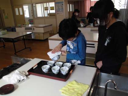 おいしくいれるために、「少しさました湯を入れる」「順に湯のみ茶わんに注いでいく」などの約束を守って入れることができました。