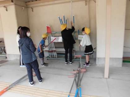 健康・運動…手洗い石鹸の補充と、竹馬などの遊具の整理整頓を行いました。