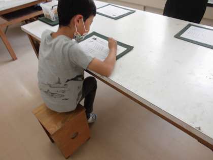 つくった後は、友だちの作品を見て感想を学習カードにまとめました。