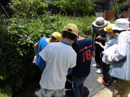 3・4年生合同の4つの班がそれぞれのエリアに分かれて、校庭の中にいる様々な生き物をさがしました。のべ80種類以上の生き物を見つけることができ、子どもたちは楽しく新しい発見ができました。