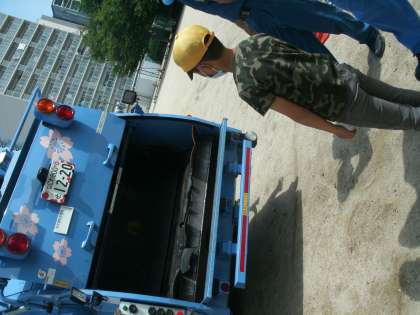 また、ゴミを実際に積む体験をし、回収されていく様子を見ることもできました。
