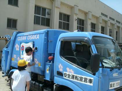 大阪市東北環境事業センターの方に来ていただき、パッカー車見学や、ゴミについての