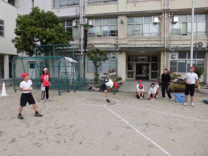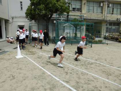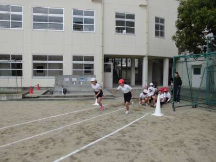本日は、運動場でソフトボール投げ、50m走を行いました。