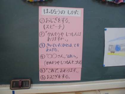 1年生が、夏休みの課題として取り組んだことをクラスのお友だちの前で発表しました。