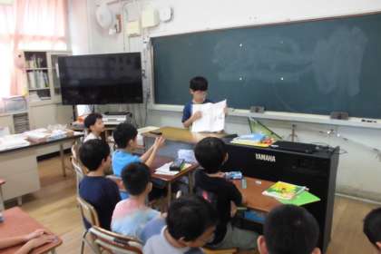 今回は、3年生、5年生が、自由研究を発表し合いました。