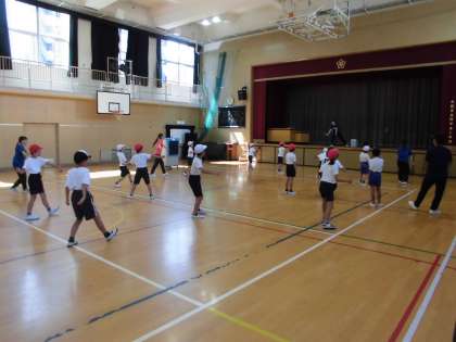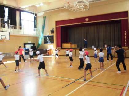 それぞれの時間、前もって担任と講師の方々が打ち合わせをして考えたダンスを、児童の前で披露していただき、一緒にリズムに合わせて踊ることをしました。