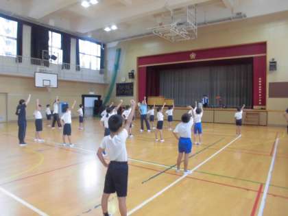 3,4年生は、先日のダンス講習会で、教えていただいたダンスをアレンジしながら踊ります。