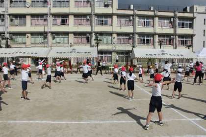 今回は、入場式・ラジオ体操・応援合戦の練習をしました。