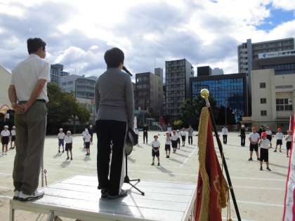 全体練習の前に、新しく来られた先生の紹介を行い、その後閉会式の練習を中心に行いました。