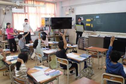 1年生算数では『繰り上がりのあるたし算』、3年生国語では『想像を広げて物語を書こう』という授業を行いました。