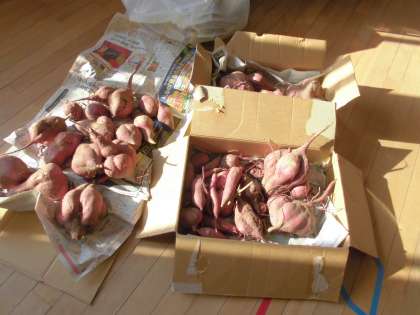 先日、イモ堀をしたところ、様々な形のサツマイモが収穫でき、大興奮でした。