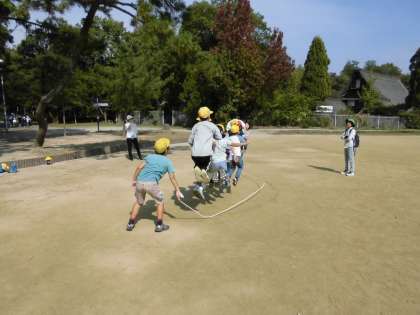 各ポイントで待っている先生が考えたゲームを行ったり、記念撮影を撮ったりしました。