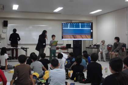 多目的室に戻り、それぞれの班で見つけた生きものを発表しました。