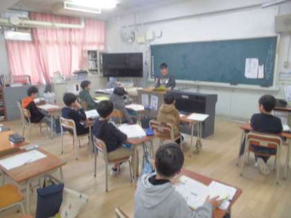 今日は、自分でつくった詩を友達に発表しました。