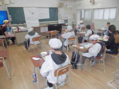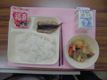 ごはん・いわしのしょうがじょうゆかけ・含め煮・いり大豆・牛乳です。
