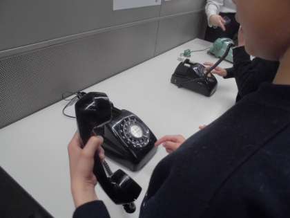 まず初めに、昔の道具(ダイヤル式電話、炊飯器、アイロン、洗濯機等)についての説明をガイドボランティア方に説明していただきました。