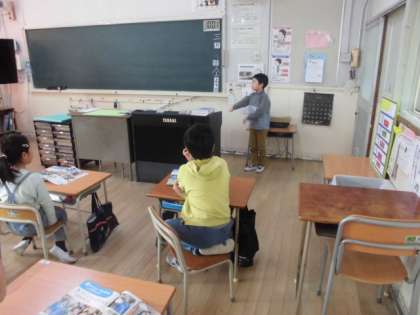 1年生が、3月11日に予定している幼稚園との交流会の準備をしました。